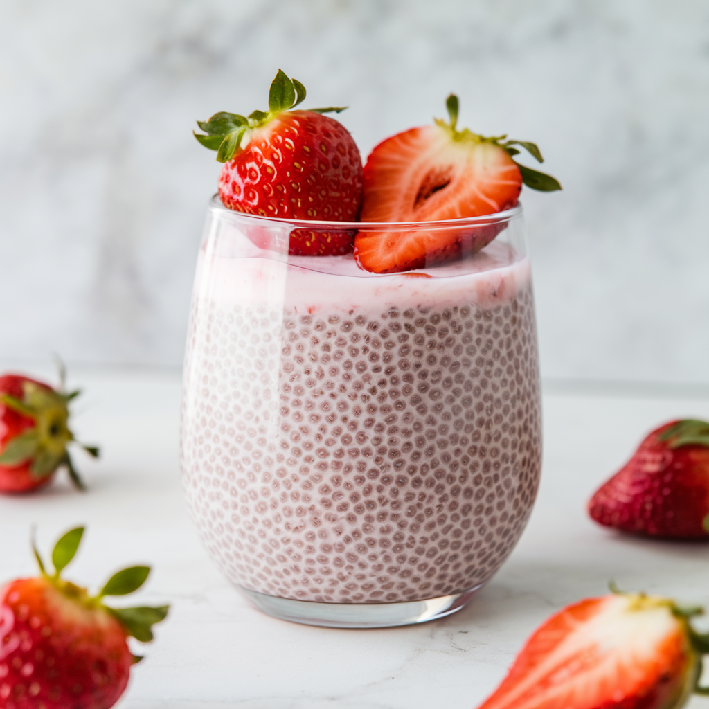 Strawberry chia seed pudding is very good for you. It has lots of health benefits. Chia seeds are full of Omega-3 fatty acids and fiber. These help your stomach feel good.